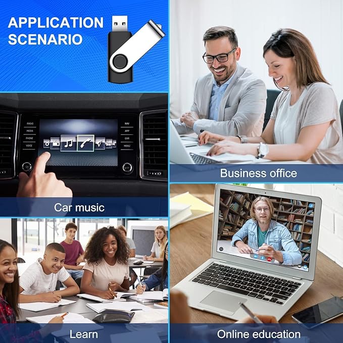 • Plug and play: no need to install any software. The USB flash drive can be used in computers, televisions, speakers, laptops, car audio,. Suitable for storing, transferring and sharing digital data in the office, school, business, daily use or travel.