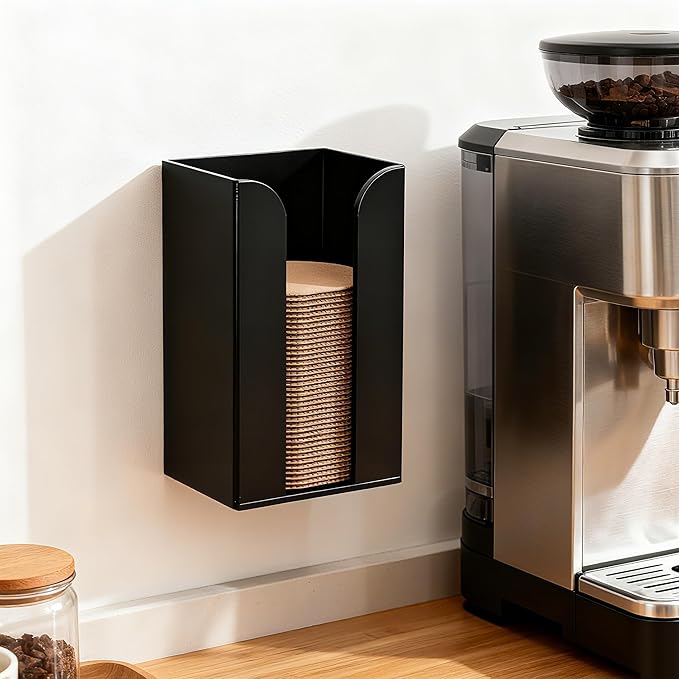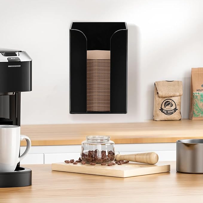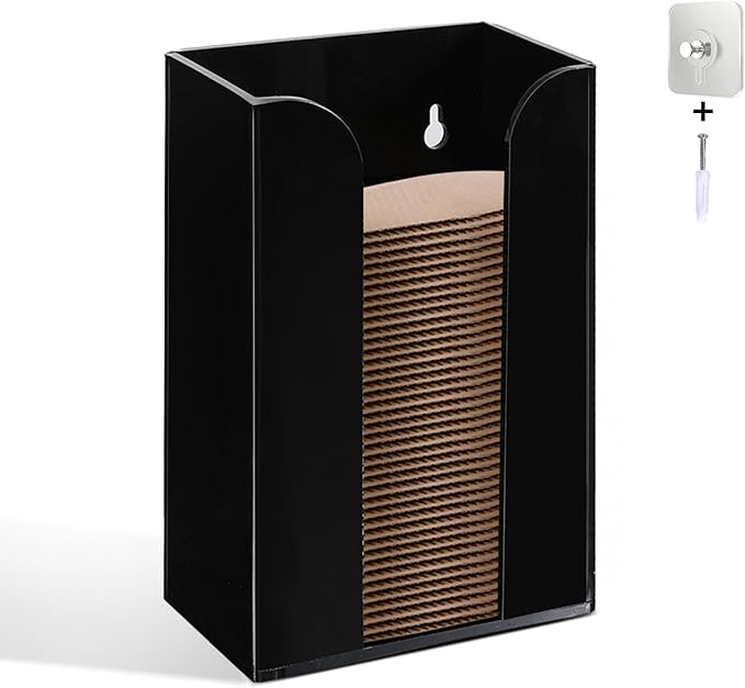IEEK Coffee Cup Sleeve Holder,Coffee Collar Organizer for Bulk Storage,Kraft Paper Cup Sleeves Rack Black Acrylic Coffee Sleeve Dispenser,Countertop and Wall Mount Disposable Cup Sleeves Organizer