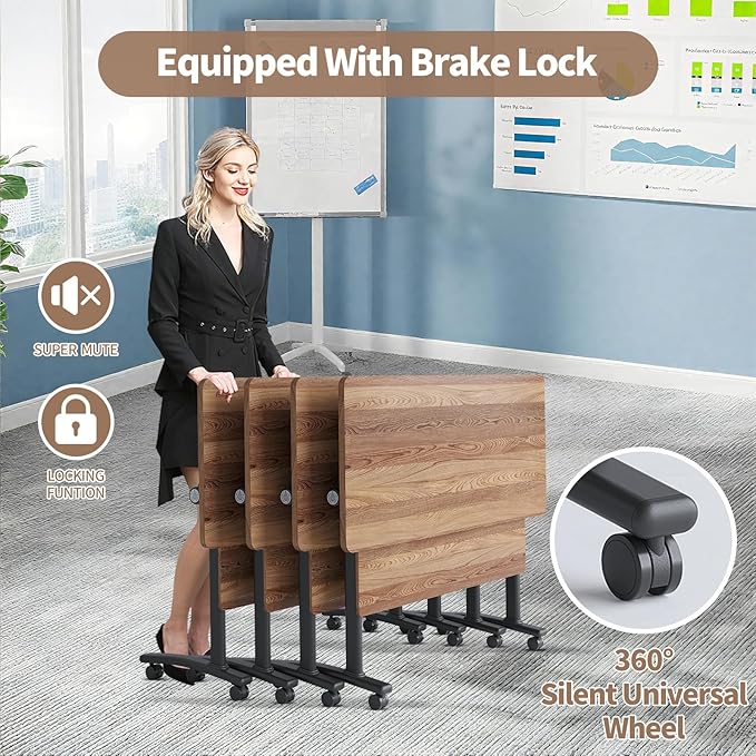 • 【Mobile Folding Conference Table】These conference room tables combine modern and minimalist design concepts with its unique folding knob and silent pulley design, which can be quickly moved and folded, showing extraordinary flexibility, and when not in need of use, it can be easily stored to save space.