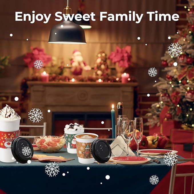 • Ideal Christmas Hot Cups with Lids: The tightly sealing lid prevents leaks and spills while keeping beverages warm. Each festive disposable cup features a rolled rim for comfortable, leak-free sipping, and a poly-coated lining to minimize condensation