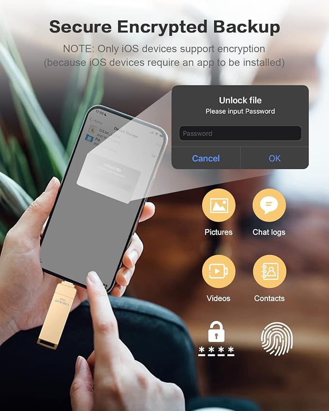 • 【Expanding Capacity for Your Phone】This is an MFi-certified photo stick for excess photo and video storage to help you free up your phone memory.